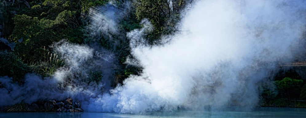 "온천 지역에서 증기를 봤어요."