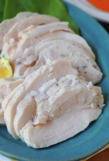 닭가슴살을 깨끗이 씻고, 불필요한 지방과 힘줄을 제거합니다. 그 후, 닭고기에 가볍게 소금과 설탕을 뿌리고, 약 30분 정도 둡니다. 이렇게 하면 닭고기가 부드럽고 촉촉하게 됩니다. - 鶏胸肉を煮る準備