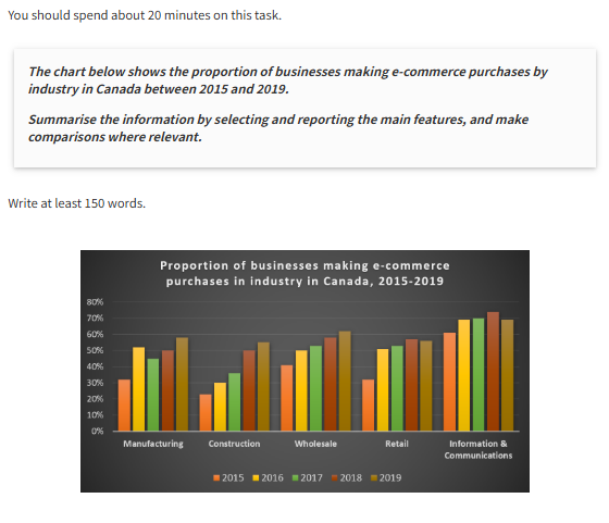 The bar chart provides information about the proportion of businesses purchasing items online according to industry in..